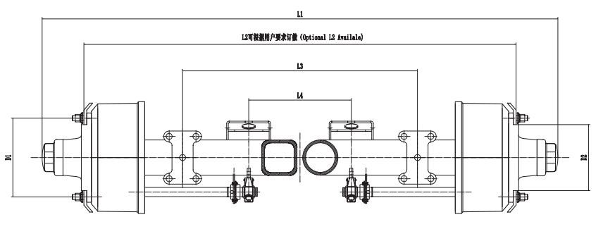 సెమీ ట్రైలర్స్ కోసం 12 టి 14 టి 16 టి హెవీ డ్యూటీ జర్మనీ జర్మనీ డ్రమ్ రకం ఇరుసులు